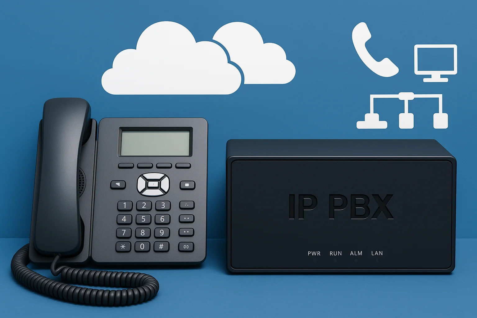 Exu Bilişim olarak her ölçekteki işletmenin sesli iletişim ihtiyaçlarını karşılamak üzere, yazılım ve donanım tabanlı IP-PBX telefon santrali çözümleri sunuyoruz.